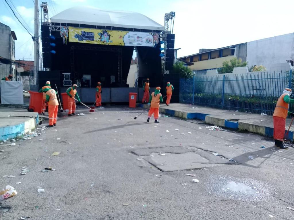 As equipes da Emsurb também fizeram bonito com o suporte na limpeza em outras localidades da zona Norte da cidade, onde os chamados bloquinhos aconteceram, a exemplo da rua Seroa da Mota, no bairro 18 do Forte, rua Maria Santos, no Bugio, rua Jânio Quadros, no Olaria e no loteamento Nova Liberdade.