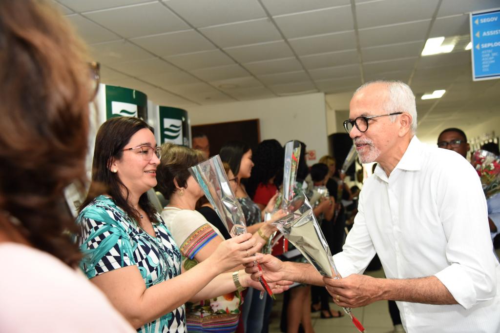 O prefeito Edvaldo Nogueira recebeu as servidoras da Prefeitura de Aracaju, na manhã desta sexta-feira, 8, com flores, na entrada da sede do Centro Administrativo. A homenagem, alusiva ao Dia Internacional da Mulher, comemorado na data, ocorre há três anos, como forma de reconhecer a importância, de cada uma, para a gestão municipal e, ao mesmo tempo, chamar a atenção para a luta pela igualdade.