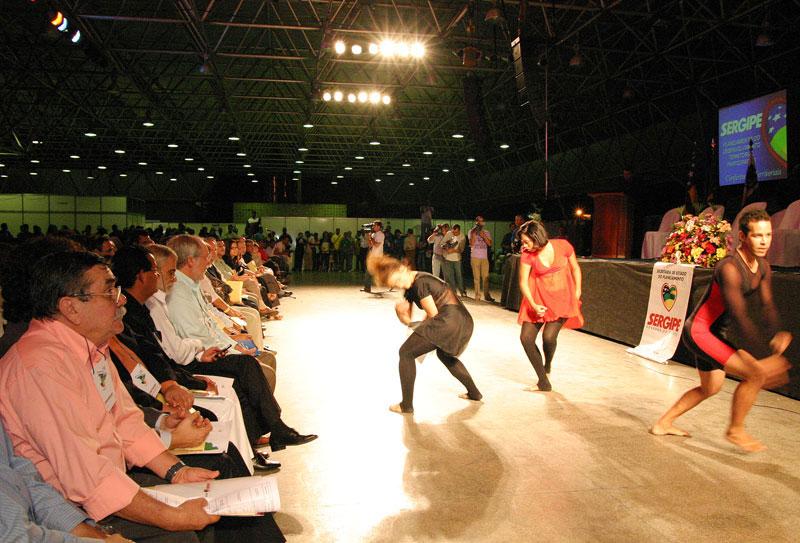 Teve início na noite de ontem, domingo, a 1ª Conferência Estadual de Planejamento do Desenvolvimento Territorial de Sergipe e 3ª Conferência Estadual das Cidades. A abertura do evento aconteceu no Centro de Convenções, no Distrito Industrial. Esta é a terceira etapa do processo de consulta e tem como objetivo construir um espaço de convergência social para a definição das políticas e dos investimentos, a partir da consolidação das propostas oriundas da mobilização e participação popular, com vistas à integração dessas políticas e elaboração de planos de Governo. O secretário extraordinário de Participação Popular, Rômulo Rodrigues, representou o prefeito Edvaldo Nogueira no evento. Eu acho que estamos vivendo um dos momentos mais importantes para Sergipe. Esse planejamento do Estado através das conferências é muito válido. Agora Sergipe tem uma política de planejamento. Através das conferências, você alia a técnica dos profissionais e administradores com a participação popular. Para isso, dividir o território de acordo com as características econômicas, geográficas e sociais de cada região teve um papel fundamental, afirmou Rômulo. Nesta última etapa, participam 750 delegados eleitos nas conferências municipais, além de 150 delegados natos. As discussões são divididas em dez grupos temáticos: Educação; Saúde; Promoção e Assistência Social; Segurança Pública; Desenvolvimento Urbano e Habitação; Cultura, Esporte e Lazer; Administração Pública; Agropecuária; Indústria, Comércio, Serviços Urbanos e Turismo; e Infra-Estrutura e Saneamento Ambiental. A Conferência Estadual prossegue até amanhã, terça-feira, quando será elaborado um relatório dos grupos temáticos e serão eleitos os delegados que irão participar da 3ª Conferência Nacional das Cidades, que acontece em Brasília. Durante o evento de abertura, houve apresentação de grupos folclóricos, musicais e teatrais do Estado. O vice-governador do Estado, Belivaldo Chagas, realizou a abertura oficial do evento, no qual estiveram presentes prefeitos de várias cidades do interior do Estado, além de secretários estaduais e do secretário municipal de Planejamento, Luciano Pimentel.