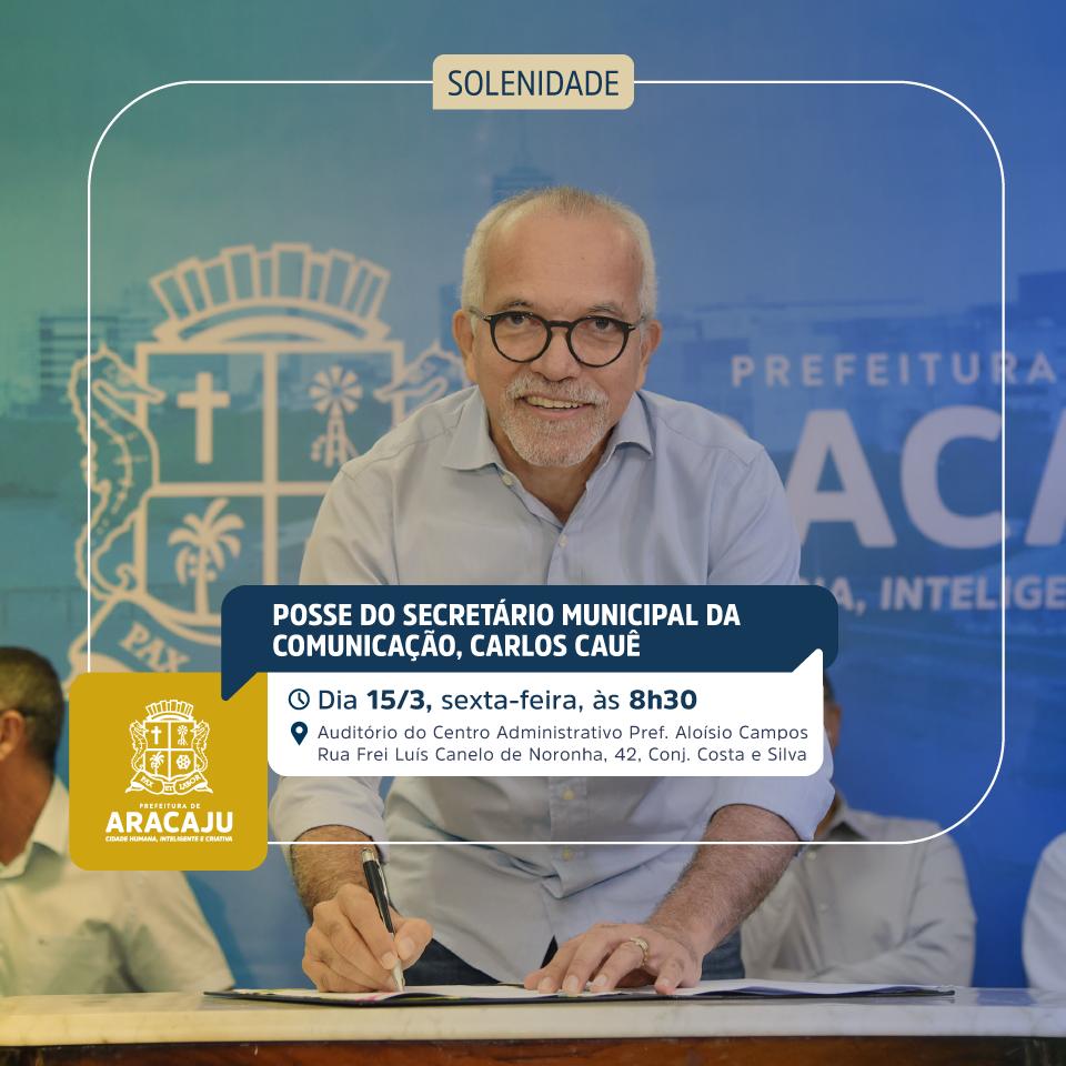 O prefeito Edvaldo Nogueira convida para a solenidade de posse do novo secretário municipal da Comunicação Social, Carlos Cauê. O evento acontece nesta sexta-feira, 15, às 8h30 no Centro Administrativo Prefeito Aloísio Campos, no conjunto Costa e Silva.