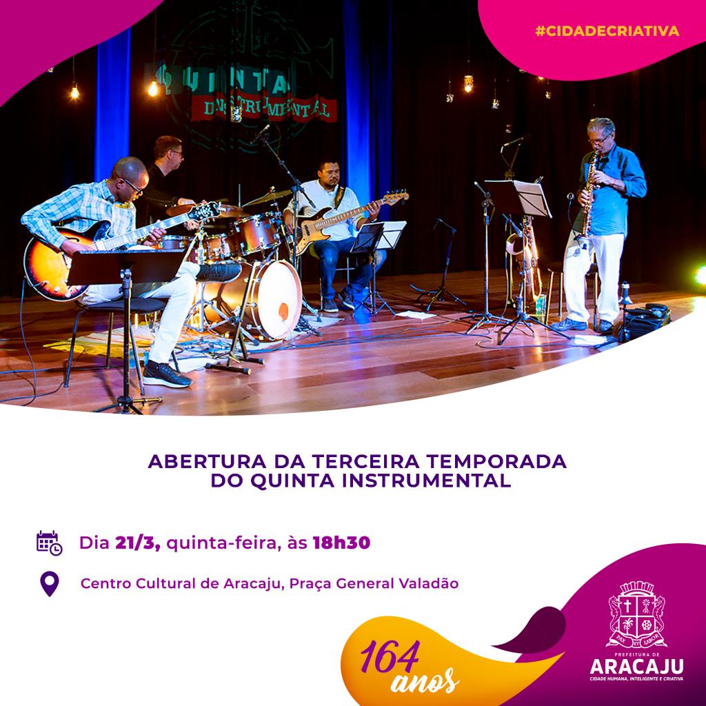 O prefeito Edvaldo Nogueira convida a todos para a abertura da terceira temporada do Quinta Instrumental nesta quinta-feira, 21, às 18h30. O projeto é realizado pela Prefeitura de Aracaju, através da Fundação Cultural Cidade de Aracaju (Funcaju), e acontecerá na praça General Valadão, em frente ao Centro Cultural de Aracaju.