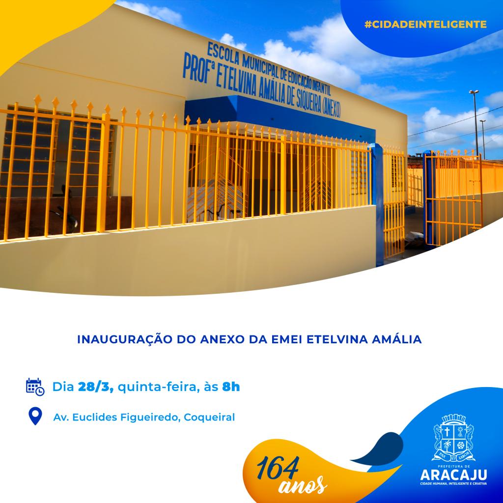 O prefeito Edvaldo Nogueira convida a todos para a inauguração do anexo da Escola Municipal de Ensino Infantil (Emei) Etelvina Amália. A solenidade acontecerá nesta quinta-feira, 28, às 8h, na própria escola, localizada na avenida Euclides Figueiredo, no bairro Coqueiral.
