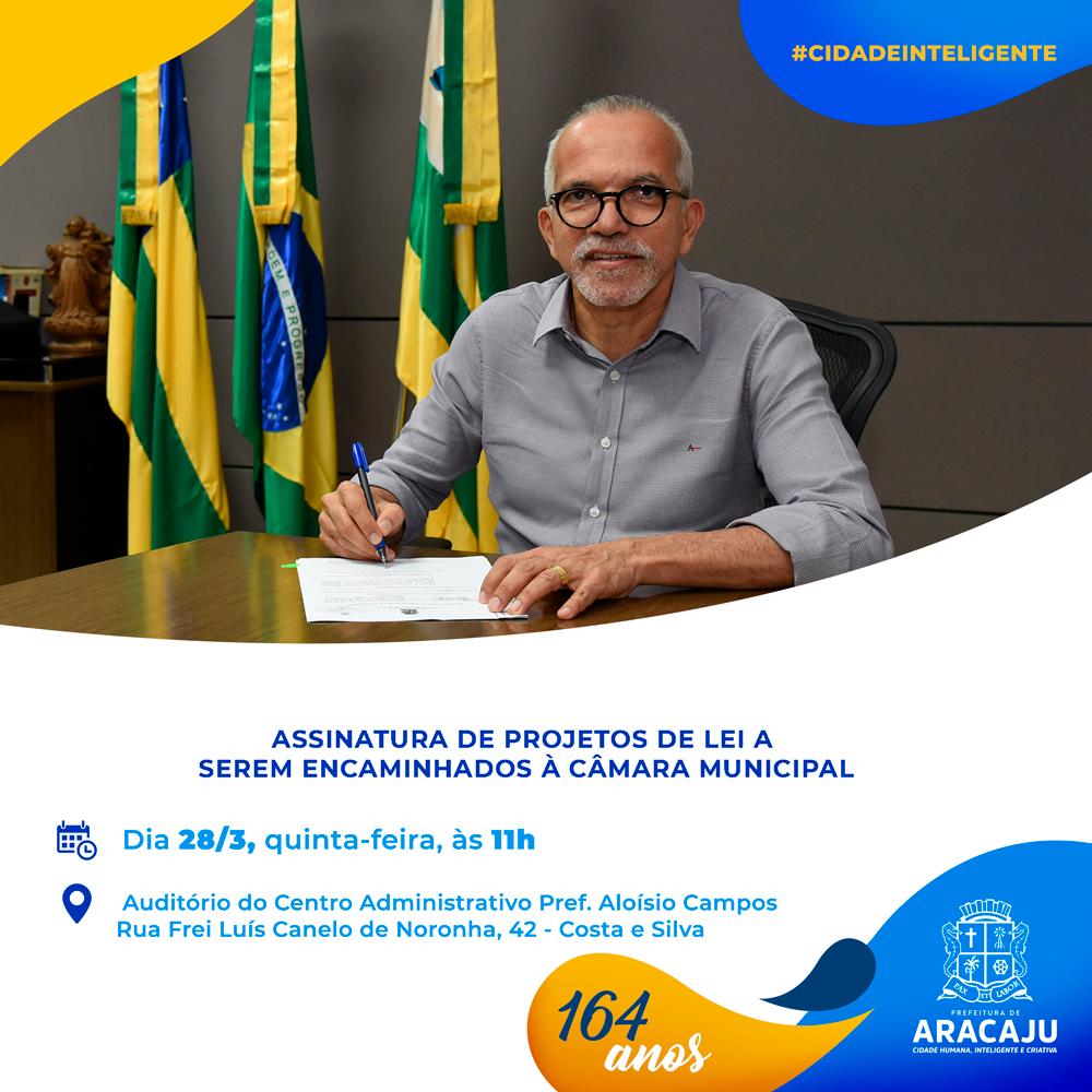 O prefeito Edvaldo Nogueira convida a todos para a solenidade de assinatura de projetos de lei a serem encaminhados à Câmara Municipal. O evento acontece nesta quinta-feira, 28, às 11h, no Centro Administrativo Prefeito Aloísio Campos, no conjunto Costa e Silva.