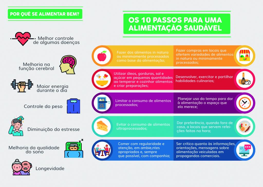 Entre outras coisas, foi possível explicar as diferenças entre alimentos in natura, minimamente processados e ultraprocessados, apontando quais as consequências de uso contínuo desses produtos, assim como os métodos corretos para higienizar as mercadorias. “O intuito é esclarecer a importância da alimentação adequada, utilizando o guia de 10 passos para o consumo saudável de alimentos. Passamos pelos setores, no centro administrativo, panfletando esse material e tirando dúvidas dos servidores a respeito de seus hábitos alimentares”, explica a nutricionista Leila Gomes, vinculada à Diretoria de Segurança Alimentar.