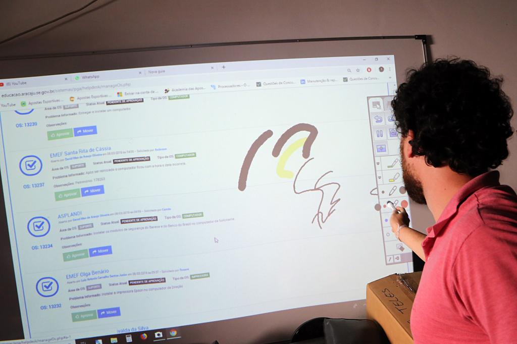 O processo de ensino do manuseio da lousa é feito pelo Departamento de Tecnologia da Informação (DTI) da Secretaria Municipal de Educação (Semed). Os técnicos responsáveis vão até as escolas e ensinam como esse equipamento deve ser utilizado. " Fazemos o passo a passo com os professores; a configuração, ensinando como usar. Fazemos a instalação de um aplicativo no notebook da escola e também ensinamos como utilizar as canetas, que são responsáveis pelo manuseio de algumas funcionalidades da lousa. É uma tecnologia bem fácil de operar", relata o técnico de suporte do DTI, Wendel Ribeiro.