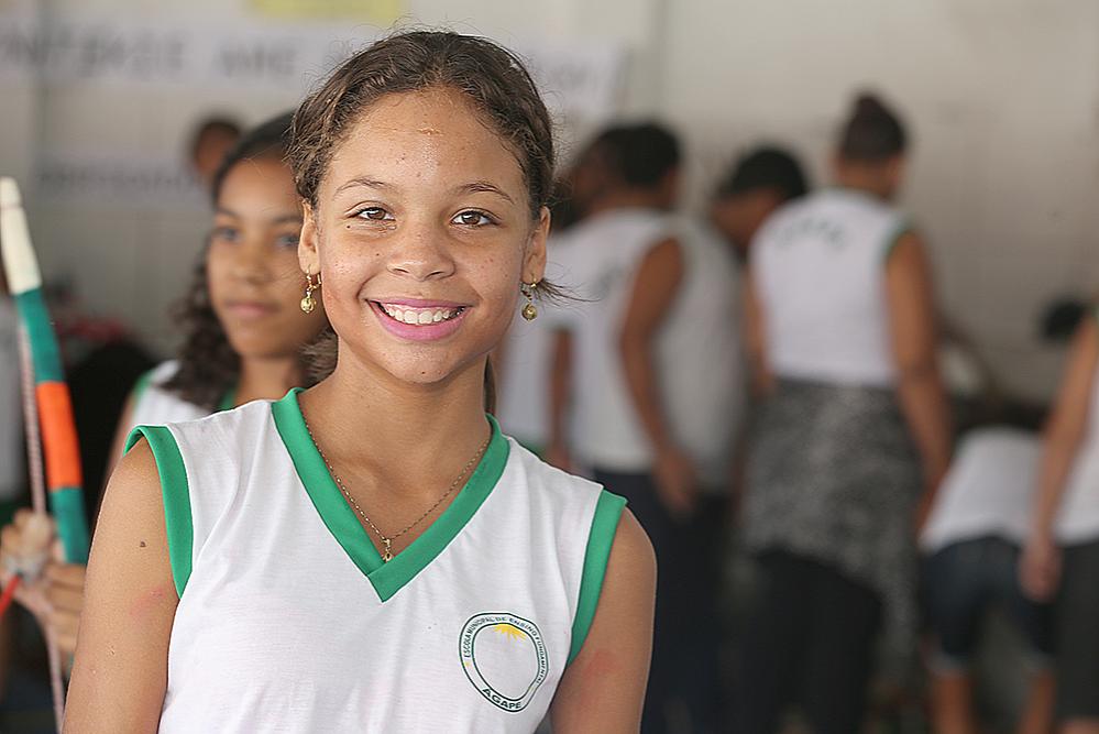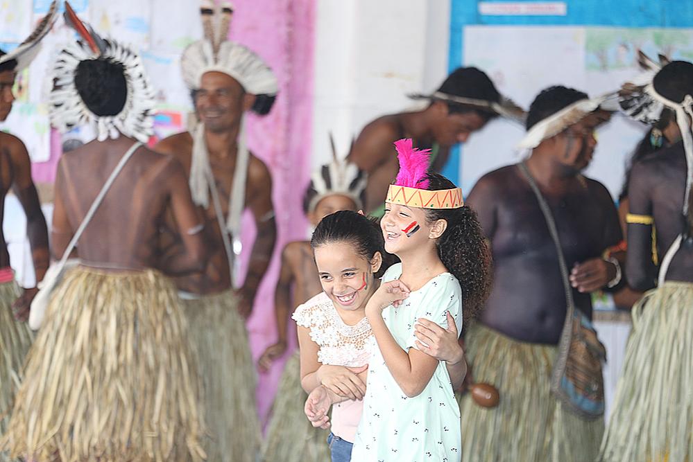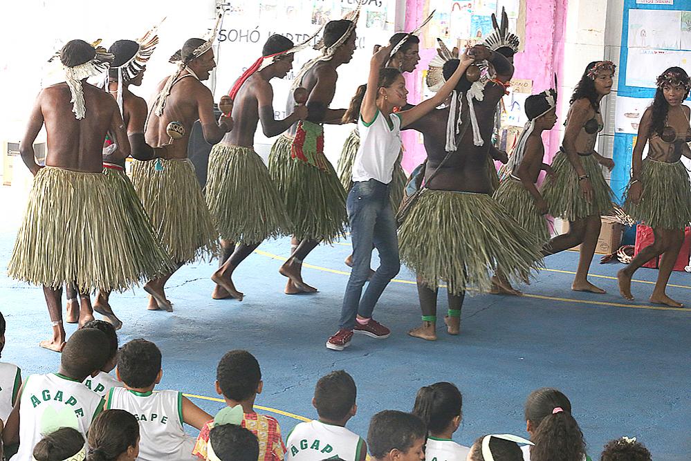 A música, a dança, as tradições e os costumes dos índios da tribo Kariri Xocós foram apresentados para as crianças da escola momentos depois do início da aula. Reunidos na quadra da instituição, índios e alunos se mesclaram numa verdadeira celebração pelo que chegou muito antes de nos entendermos como sociedade.
