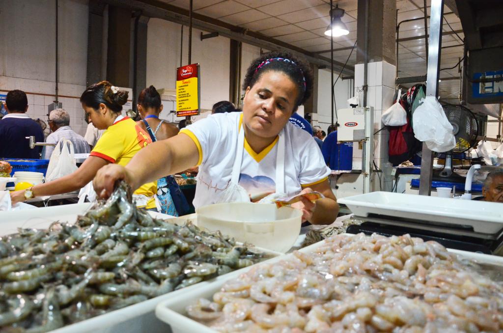Mais adiante, no Mercado Central Maria Virgínia Franco, que concentra a maior parte de comerciantes do setor de pescados e hortifruti da cidade, a banca da vendedora de camarão, Ana Maria Santos, estava sendo bem procurada. "Estou com boas expectativas de vendas, principalmente entre quinta e sexta-feira".