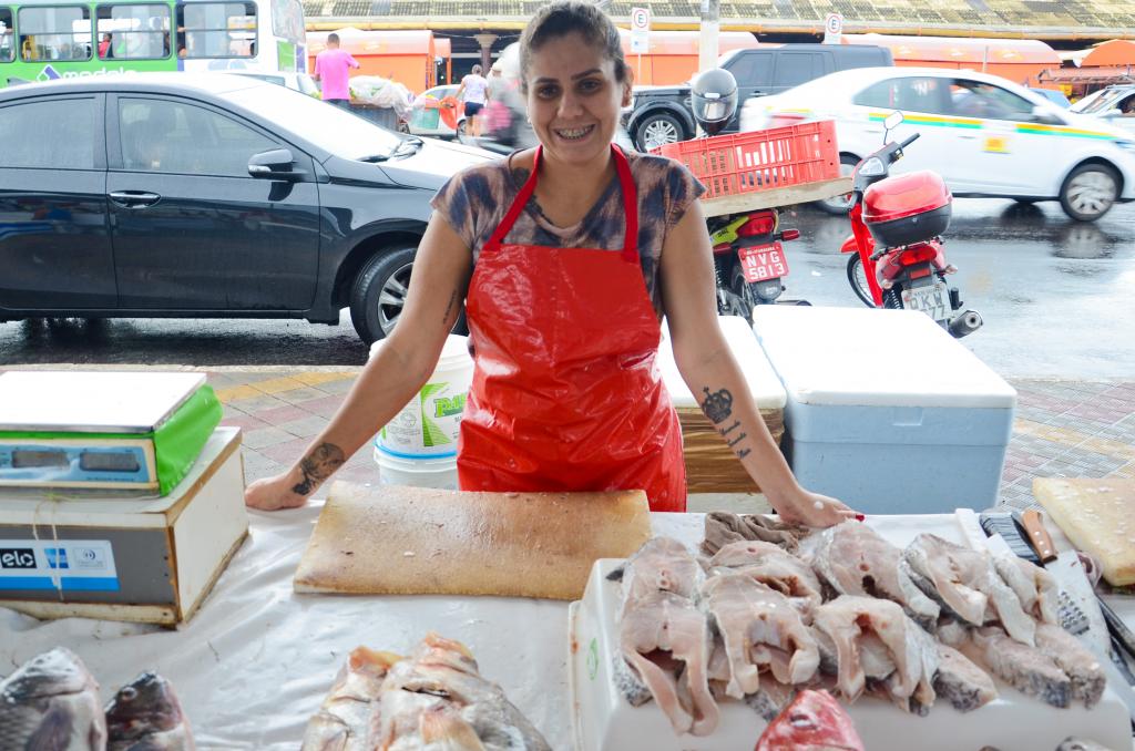 Acostumada a ter clientes de última hora, a comerciante Pricila Rodrigues investiu em um bom estoque de pescados e está confiante de que voltará pra casa sem mercadorias, após os três dias de vendas na Feira do Peixe. “Essa feirinha vai garantir um dinheiro extra este mês. A procura pelo pescado esse ano está boa, por isso, estou animada e diversifiquei meu estoque. Aqui, o freguês pode encontrar robalo, tilápia, pescada amarela, cação, entre outros. Tudo fresquinho para o almoço da Semana Santa”, afirmou ela.