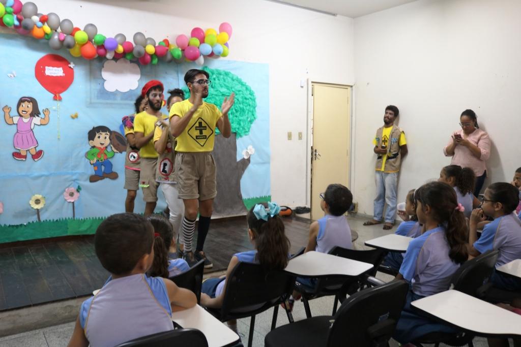 Na manhã desta terça-feira, 23, a Superintendência Municipal de Transportes e Trânsito (SMTT) realizou uma ação educativa na Biblioteca Municipal Clodomir Silva, unidade administrada pela Fundação Cultural Cidade de Aracaju (Funcaju). Visitantes da biblioteca e alunos com idades entre seis e oito anos da Escola Adventista do Siqueira Campos aprenderam mais sobre boas condutas no trânsito de forma lúdica com o Grupo Cones de Teatro.