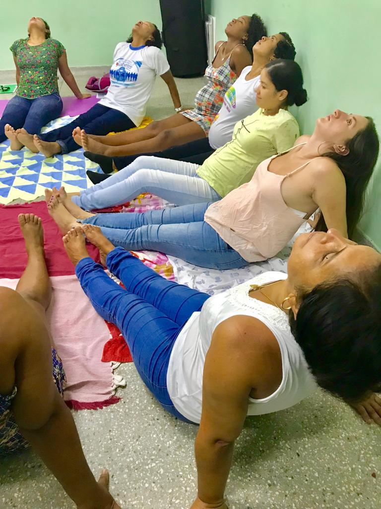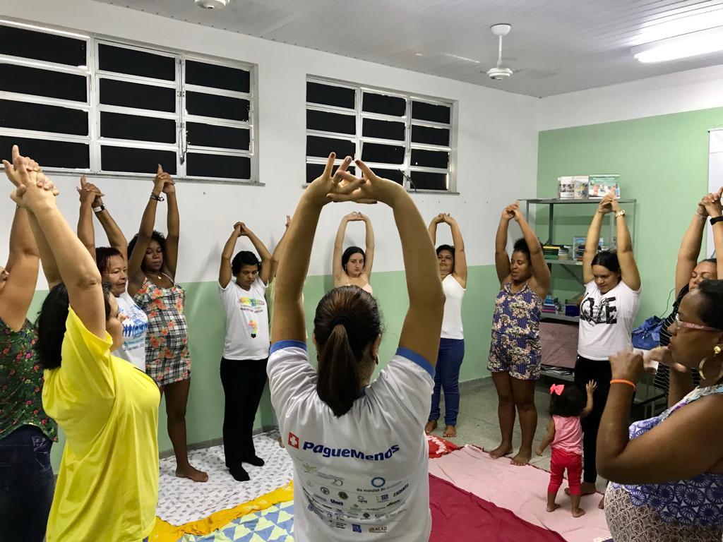 "Temos um trabalho mais específico para atender as necessidades das gestantes, que debatem principalmente sobre trabalho de parto; importância dos exames periódicos durante a gestação; cuidado com a criança; higiene; autoestima; depressão pós-parto; combate à sífilis; contra a violência obstétrica, entre outras situações que podem acontecer. Hoje o tema foi à prática do yoga, que é uma das opções mais indicadas para as grávidas, por ser uma modalidade que integra atividades físicas e práticas de relaxamento, proporcionando o bem-estar do corpo e da mente", explicou.