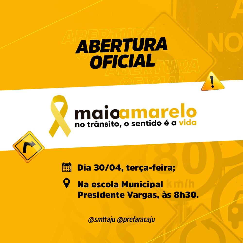 A Prefeitura Municipal de Aracaju, através da Superintendência Municipal de Transportes e Trânsito (SMTT), abrirá oficialmente a programação do Maio Amarelo 2019 na manhã de terça-feira, 30. A solenidade será realizada às 8h30, na Escola Municipal Presidente Getúlio Vargas, localizada no bairro Siqueira Campos.