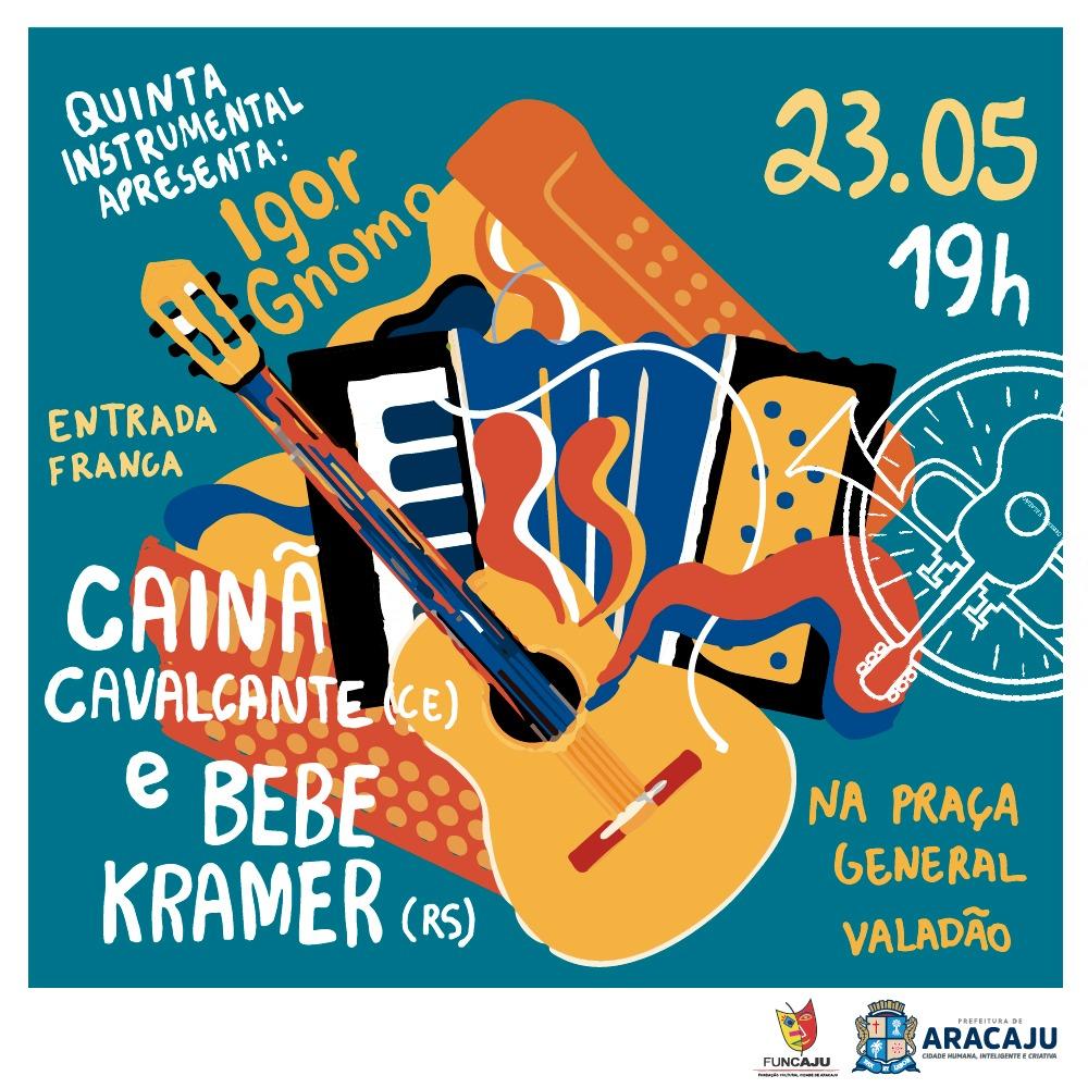 A próxima edição do projeto Quinta Instrumental, realizado pela Prefeitura de Aracaju, através da Fundação Cultural Cidade de Aracaju (Funcaju), no dia 23 de maio, irá apresentar, pela terceira vez, o guitarrista Igor Gnomo. O artista, que fará a abertura do evento, possui uma carreira consolidada e é reverenciado em todo o país. Na oportunidade, a partir das 19h, na praça General Valadão, ele dividirá palco com outros grandes nomes da música brasileira, Cainã Cavalcante e Bebe Kramer.