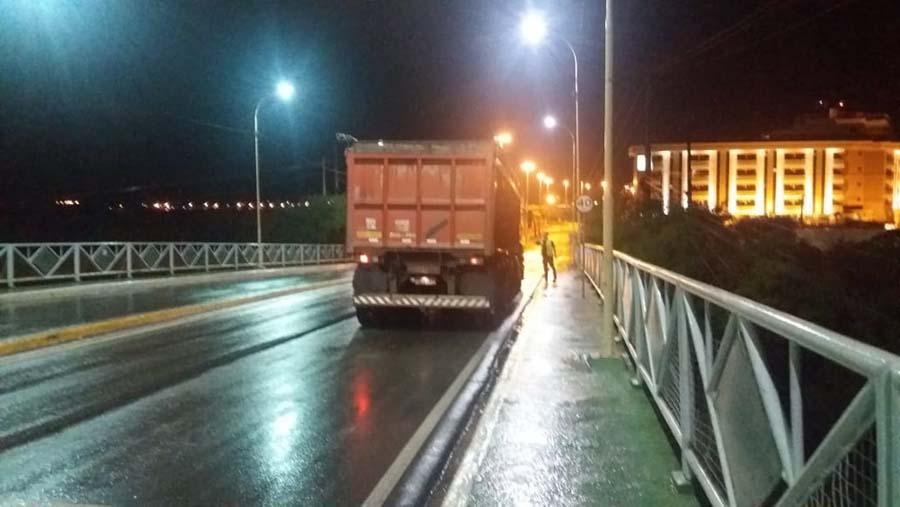 Como parte das avaliações, um veículo pesando, de aproximadamente 40 toneladas, transitou reiteradas vezes num processo de ida e volta, a fim de que os equipamentos pudessem medir as vibrações provocadas. "Enquanto a carreta fazia a passagem em cima da ponte, com acelerações e velocidades diferentes, os computadores conjugados a dispositivos que medem a frequência de vibrações registravam os picos de tremores em diferentes pontos. A partir daí, os dados serão levados para análises laboratoriais e revelarão com fidedignidade o estado de resistência desta ponte", confirma o secretário.