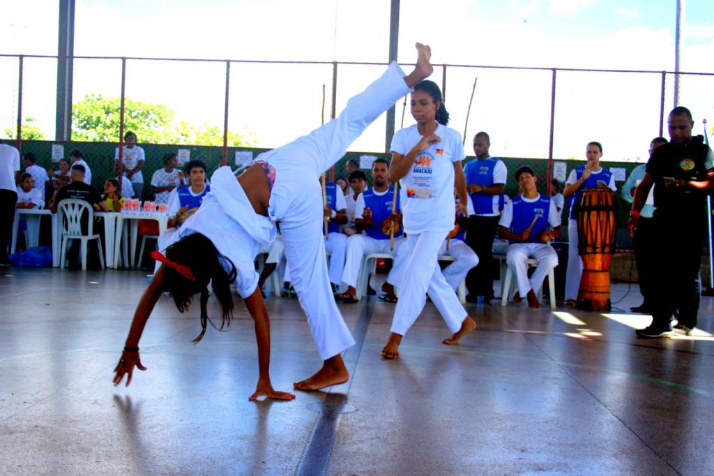 Uma manhã ao som do berimbau, do atabaque e com muito movimento. Alunos da rede municipal de ensino participaram,, neste sábado, 19, do primeiro Festival de Capoeira das Escolas Municipais de Aracaju, realizado graças à parceria entre a Prefeitura, através da Secretaria Municipal da Educação (Semed), e a Liga Aracajuana de Capoeira. Cerca de 100 estudantes, divididos em diversas modalidades, participaram do evento que ocorreu na Praça da Juventude, no conjunto Augusto Franco.