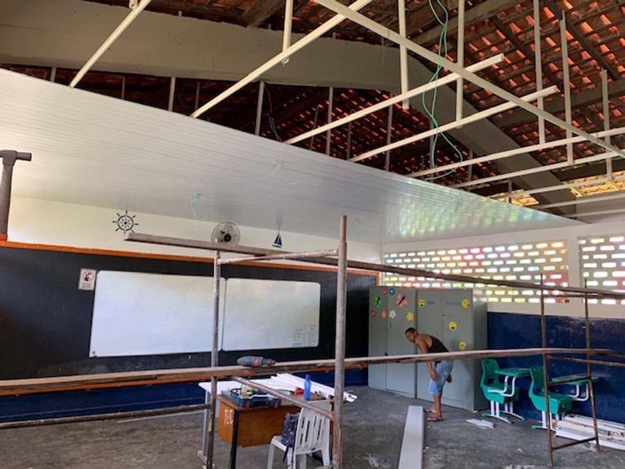 Nestas unidades, estão sendo executadas melhorias nas salas de aulas e compartimentos administrativos, substituição de telhados e forros danificados, reforço do gradeamento e outros equipamentos que protegem as escolas, pintura e toda a parte elétrica e hidráulica devidamente fiscalizada e substituída, caso seja necessário.