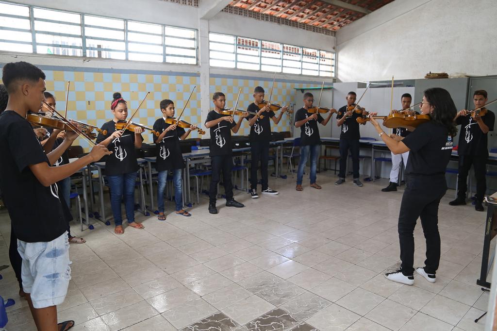Erinaldo Santos, de 15 anos, no entanto, estava em sua primeira aula. “Na minha família, tenho um tio que toca violão que até lembra um pouco violino, mas, quando a gente começa a tocar, vê que é bem diferente. Isso chamou a minha atenção. Estou empolgado para as aulas e acredito que será bom porque vou ocupar meu tempo com uma coisa bacana”, considerou o aluno.