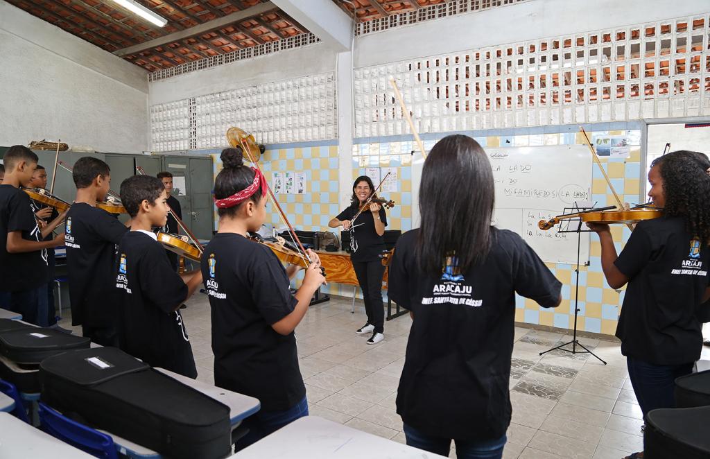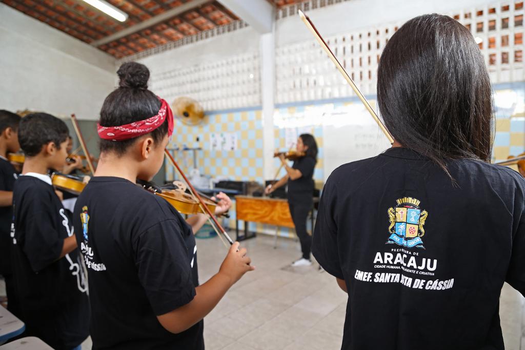 O som das cordas de um violino não é muito popular no Brasil, ainda mais no Nordeste, onde sanfona, acordeom, zabumba e instrumentos de percussão são mais enraizados. Porém, é esse o som que tem feito parte do ritmo no cotidiano de meninas e meninos da Escola Municipal de Ensino Fundamental (Emef) Santa Rita de Cássia, localizada no Novo Paraíso. Através do projeto Mais Educação, uma professora de Artes da unidade de ensino decidiu apresentar um novo mundo para os alunos que, hoje, ganharam outra inspiração pela notas agudas que saem das quatro cordas do instrumento.