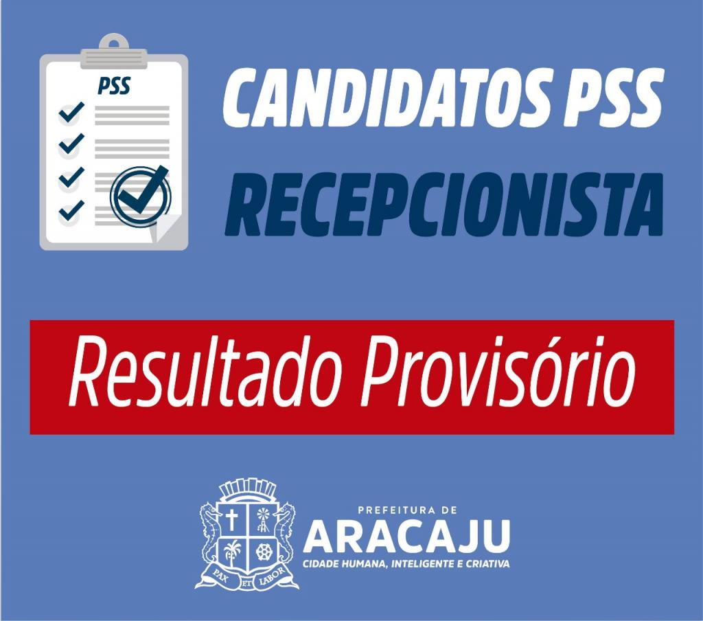 A Prefeitura de Aracaju, através das Secretarias Municipais da Saúde (SMS) e do Planejamento, Orçamento e Gestão (Seplog), divulga, nesta terça-feira, 28, o resultado provisório do Processo Seletivo Público Simplificado (PSS), visando recompor o cadastro reserva de recepcionistas no Sistema Municipal de Saúde de Aracaju.