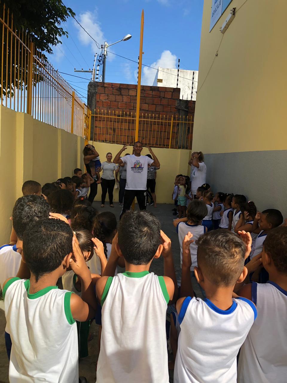As escolas da rede não ficaram de fora do Dia do Desafio. Na Escola Municipal de Ensino Fundamental (Alencar Cardoso), no bairro José Conrado de Araújo, os professores de Educação Física fizeram uma série de atividades com os alunos na quadra da escola. Cerca de 150 alunos fizeram alongamentos e aprenderam sobre a importância da atividade física. “Aqui na escola, as aulas de Educação Física são as preferidas deles. Temos uma quadra legal e isso ajuda a eles praticarem e extravasar toda a energia. Geralmente são aulas muito dinâmicas e eles adoram. E nós, da escola, sabemos da importância de praticar exercícios desde cedo, para garantir uma melhor qualidade de vida”, observou a coordenadora pedagógica da Emef, Luciane Simões.