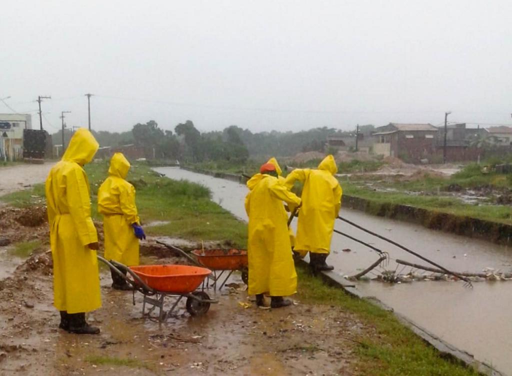 A sexta-feira, 7, começou com muito trabalho para as equipes da Empresa Municipal de Serviços Urbanos (Emsurb). Logo nas primeiras horas da manhã, quando as chuvas se intensificaram, técnicos da Diretoria de Operações (Dirop) realizaram a vistoria de canais das zonas Norte e Sul, objetivando monitorar o escoamento das águas pluviais e identificaram os locais onde ocorreram queda de galhos e de árvores para providenciar o recolhimento. Para atender as demandas com mais precisão e agilidade, 533 agentes foram para as ruas da cidade.