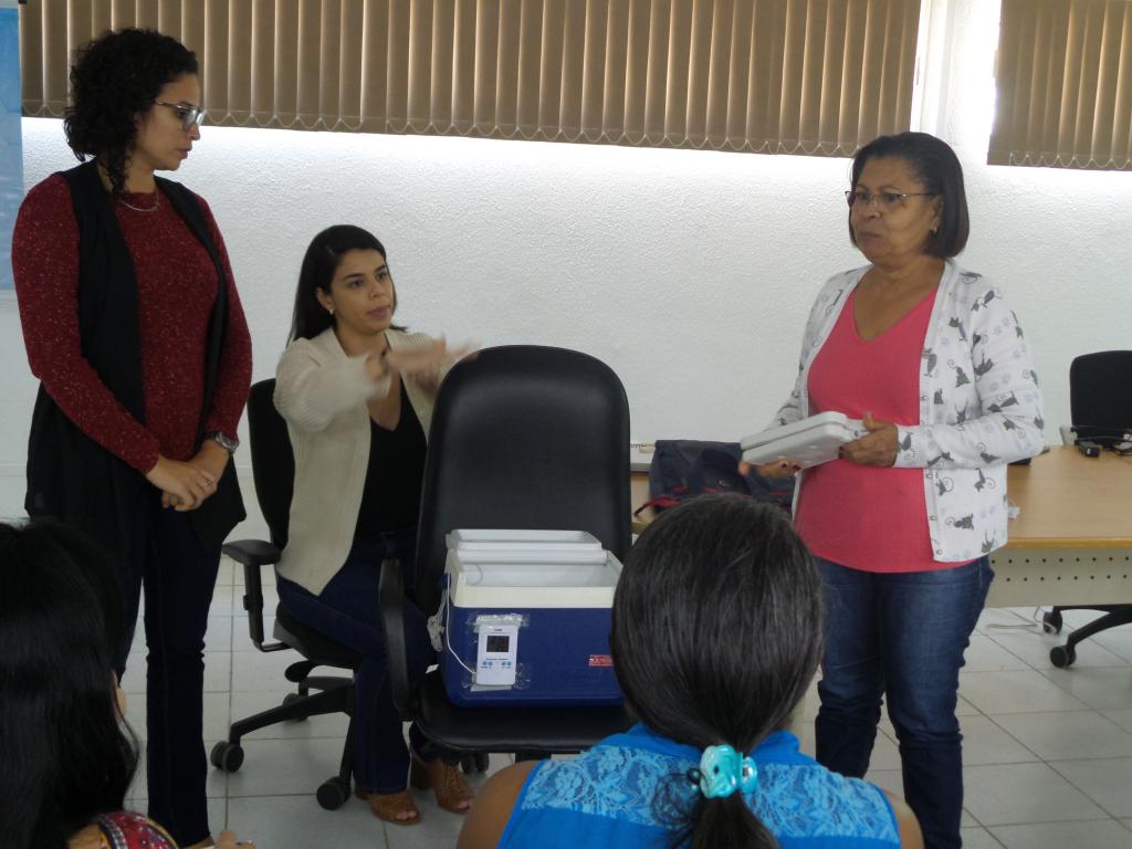 Segundo a coordenadora, este encontro foi uma solicitação do Programa Saúde da Criança, do Adolescente e do Jovem (PSCAJ), que é responsável pelo Projeto Corujinha e sentiu a necessidade de ofertar orientações e atualizar os profissionais. Além da técnica do PSCAJ, Ana Elisabete Silva, também participaram do evento as técnicas do Programa de Imunizações, Gabriella Souza Duarte e Ana Virgínia Santos Melo, e a fiscal da Rede de Vigilância Sanitária e Ambiental (Revisa), Flávia Brasileiro, que auxiliou nas explicações das orientações sobre a conservação dos imunobiológicos (vacinas).