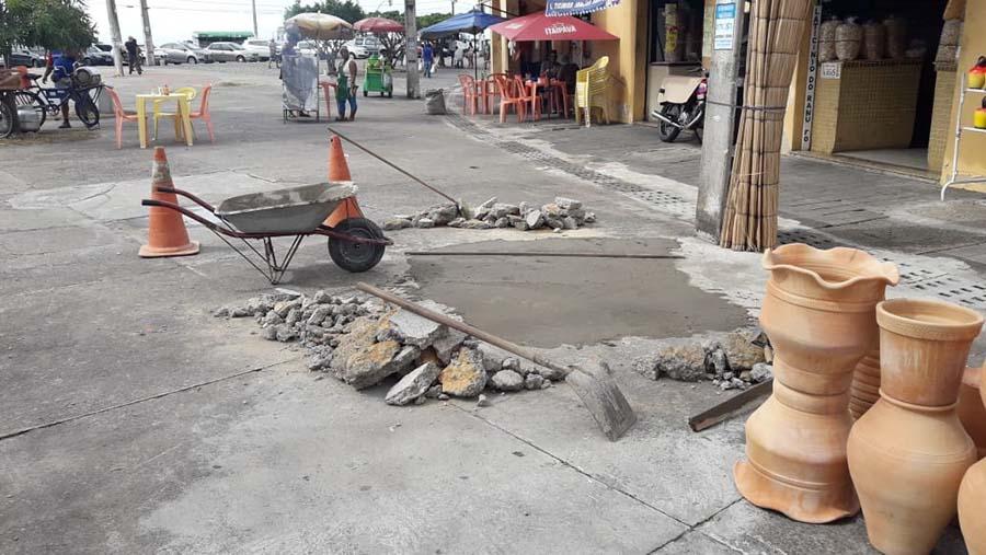 A empresa municipal está identificando os pontos desgastados ou danificados do piso da praça e fazendo reparos com material adequado para o tipo de pavimento. As grelhas que cortam o espaço, responsáveis pela evacuação das águas pluviais, também passam por manutenção, limpeza e reposição das tampas quebradas.