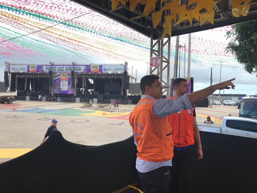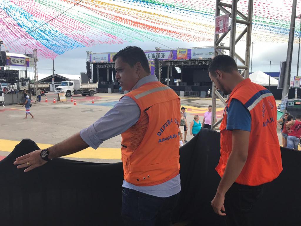 Vistoria feita pela Prefeitura de Aracaju, neste domingo, 23, por meio da Secretaria da Defesa Social e da Cidadania (Semdec), atestou a observância das normas de segurança na instalação de toda estrutura do Forró Caju 2019, uma realização da Prefeitura da capital, com patrocínio do Ministério do Turismo. A fiscalização e o acompanhamento da montagem das estruturas da festa foi realizada pela Defesa Civil de Aracaju, desde a chegada dos primeiros competentes.