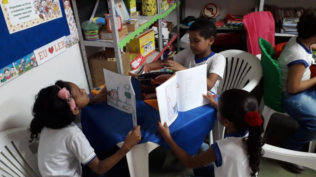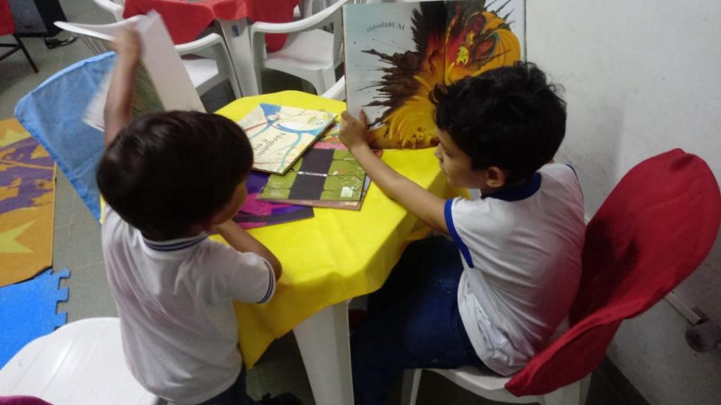 “Nos preocupamos em tornar o ambiente agradável, colorido, lúdico, onde as crianças pudessem sentir prazer em estar na sala. No horário vago delas, como quando terminam uma prova ou quando estão no recreio, elas podem vir aqui e desfrutar. Seja nas estantes, nas caixas, nos baús, todos os livros estão à disposição deles todos os dias, para lerem em conjunto, sozinhos ou até levar pra casa”, completa Alessandro.