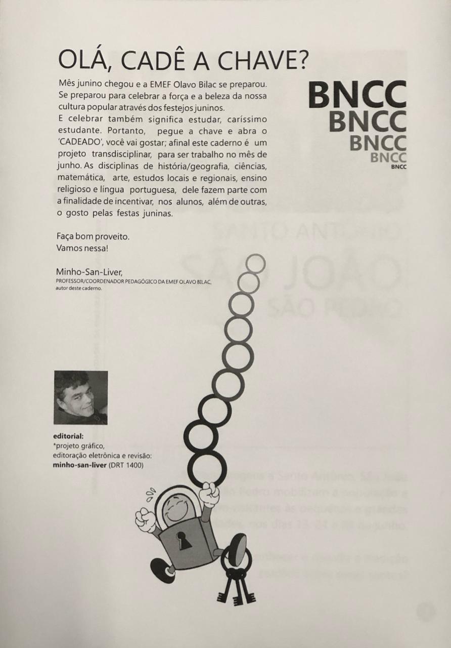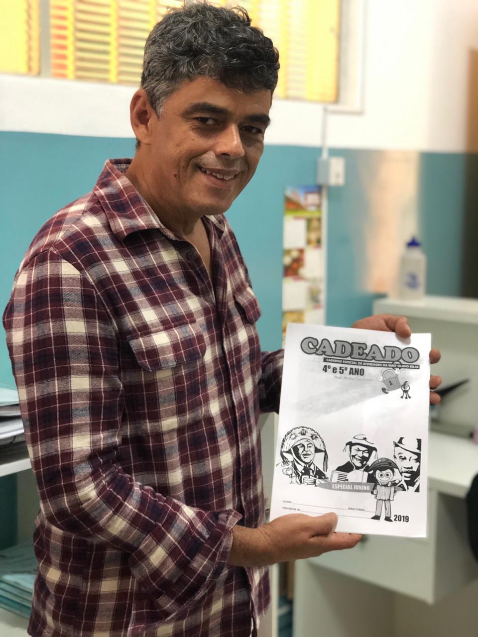 Na Escola Municipal de Ensino Fundamental (Emef) Olavo Bilac, no bairro Cidade Nova, a temática do São João não está apenas nas bandeirolas decorativas ou nos arraiais, está também nos estudos. Criado pelo coordenador pedagógico da unidade, Waltiglei Santos de Oliveira - ou professor Minho, como é chamado carinhosamente pelos alunos – o livro didático ‘Cadeado’ utiliza a temática junina para englobar as principais disciplinas do Ensino Fundamental, obedecendo as diretrizes da Base Nacional Comum Curricular (BNCC).