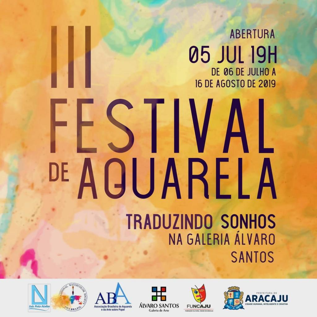 Equipamento cultural gerenciado pela Fundação Cultural Cidade de Aracaju (Funcaju), a Galeria de Arte Álvaro Santos, localizada na praça Olimpio Campos, no Centro, recebe nesta sexta-feira, dia 5, o III Festival de Aquarelas: Traduzindo Sonhos. A exposição permanece em cartaz até 16 de agosto e apresenta ao público 61 obras de 31 artistas aquarelistas integrantes da Associação Brasileira de Aquarela (ABA) e da International Watercolor Society (IWS-Brazil).