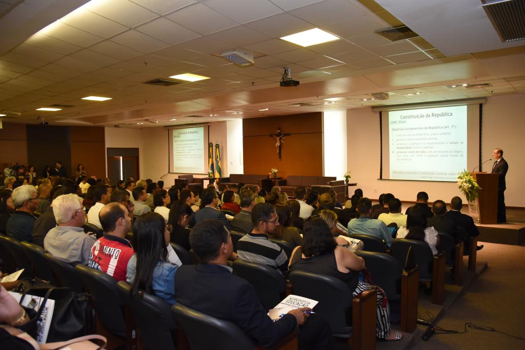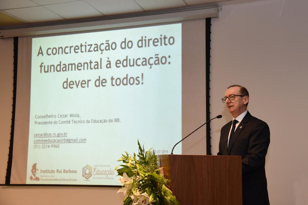 Já a segunda palestra foi “A Concretização do Direito Fundamental à Educação: dever de todos”, explanada pelo conselheiro do TCE do Rio Grande do Sul, Cezar Miola, que atualmente preside o Comitê Técnico de Educação (CET) do Instituto Rui Barbosa (IRB).