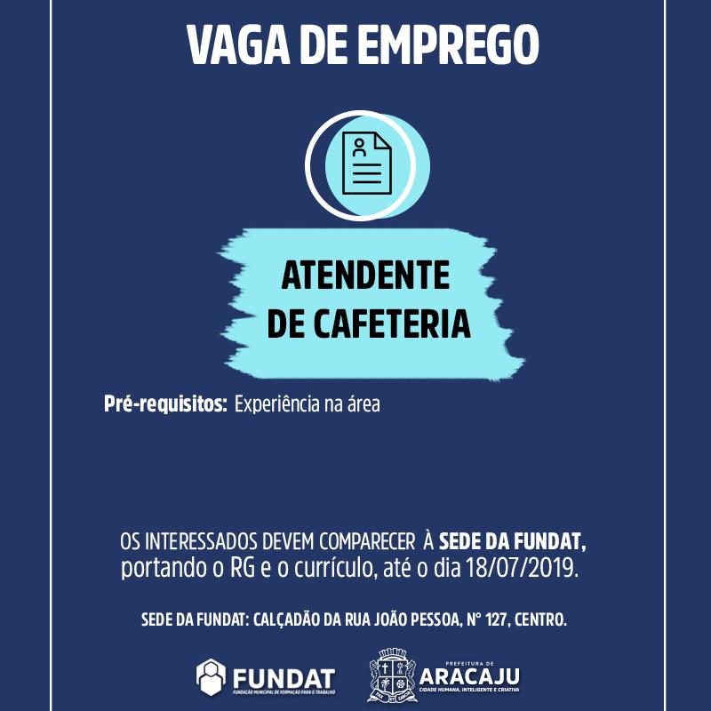 A Prefeitura de Aracaju, por meio da Fundação Municipal de Formação para o Trabalho (Fundat), anuncia a oferta de novas oportunidades de emprego para os cidadãos que desejam ingressar no mercado de trabalho. Desta vez, as vagas disponíveis são para atendente de cafeteria, técnico em farmácia e operador de caixa, estas duas últimas destinadas à pessoa com deficiência (PCD).