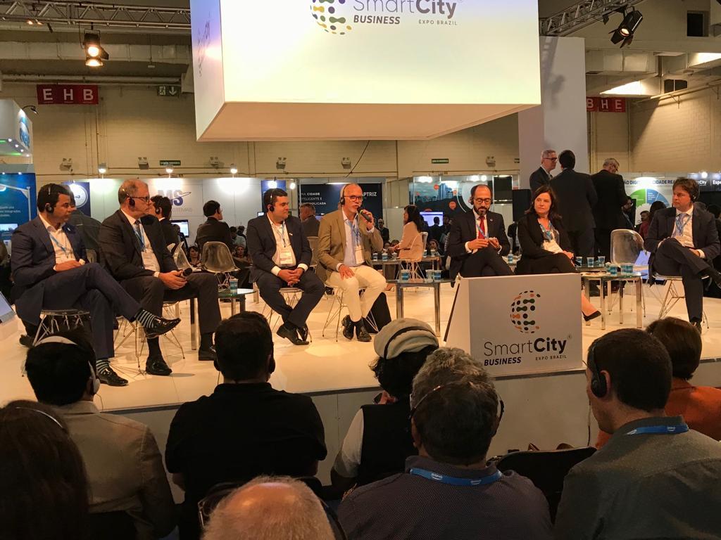 O prefeito Edvaldo Nogueira participou, nesta terça-feira, 23, em São Paulo, da Smart City Business Brazil Congress & Expo 2019. O evento, que reúne representantes de diversas cidades brasileiras, entre prefeitos, secretários, além de governadores, deputados e empresas de tecnologia, discute a inovação como vetor do desenvolvimento social e segue até quarta-feira, 24. Edvaldo foi um dos debatedores do evento, no painel "Governo Digital e a construção de cidades inteligentes".