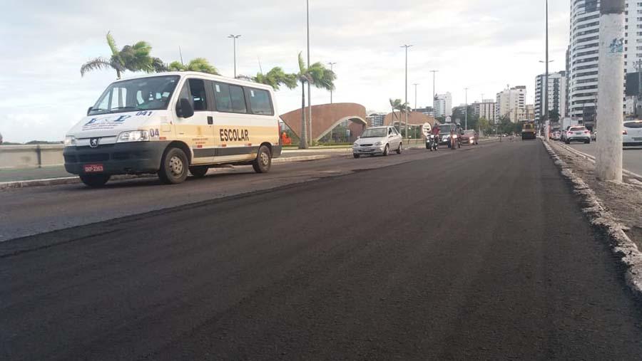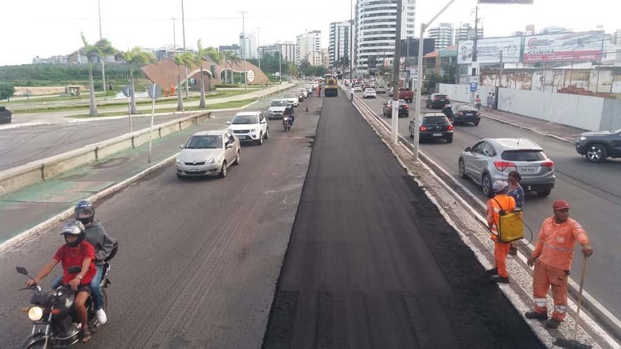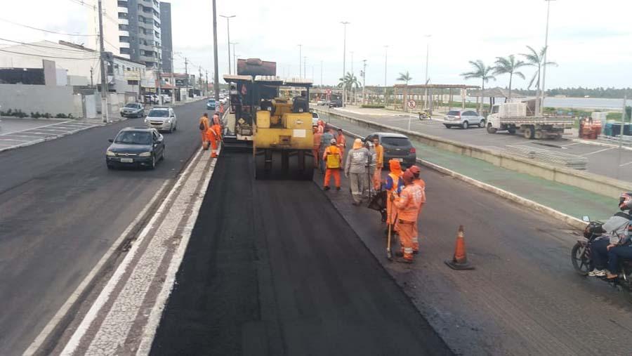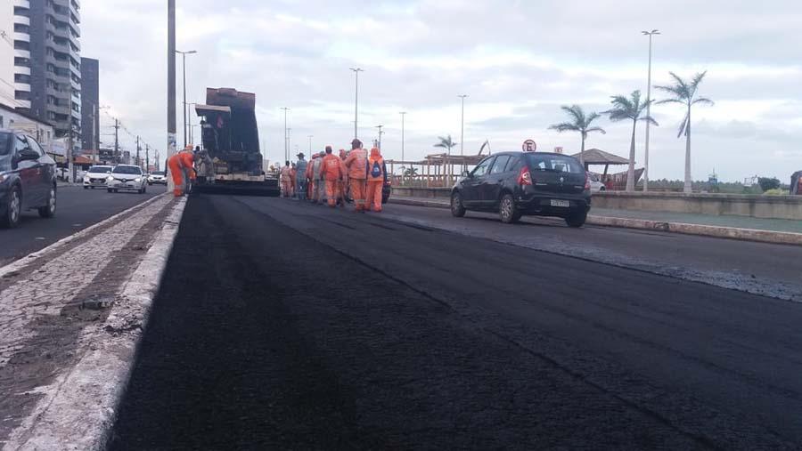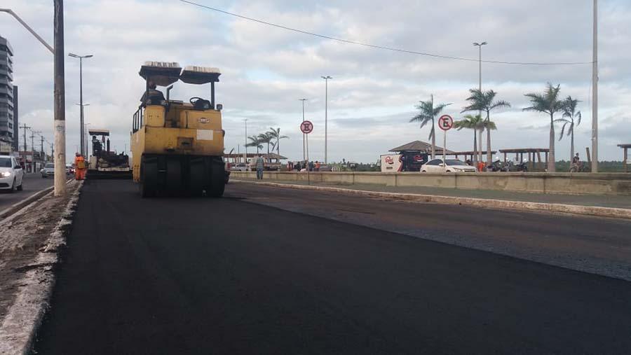 A obra de mobilidade que está revitalizando o piso asfáltico da avenida Beira Mar avançou mais um trecho na tarde desta sexta-feira, 26. A empresa contratada para executar todas as fases da obra aproveitou o tempo propício e aplicou mais 80 toneladas da asfalto na Beira Mar situado, no trecho que compreende o Calçadão da Praia Formosa. Com mais esta extensão de pista recapeada, já são cerca de 5km contemplados com uma nova malha asfáltica, soma que leva em consideração os dois lados da via.