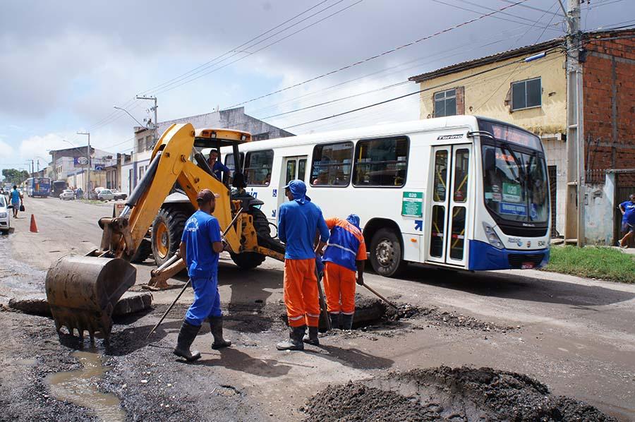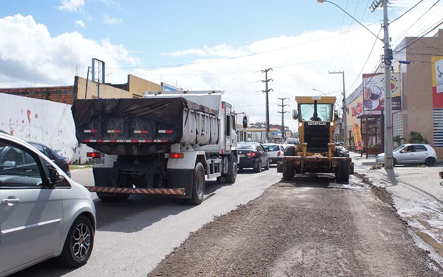Mais de 100 profissionais atuam, ao longo do dia, em serviços de melhorando da malha viária de sete bairros; recuperando a drenagem de oturos nove bairros; além de executar terraplenagem e patrolamento nas avenidas Alexsandro Alcino, Euclides Figueiredo e Rio Poxim.