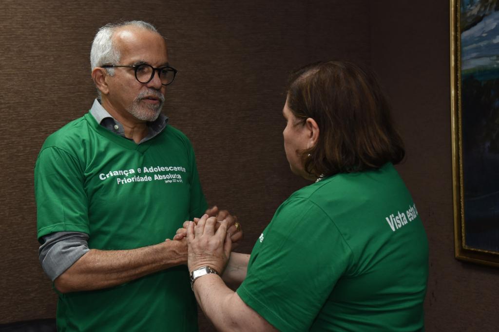 O prefeito Edvaldo Nogueira vestiu a camisa da campanha “Criança e Adolescente Prioridade Absoluta”, iniciativa do Tribunal de Justiça de Sergipe com foco na proteção às crianças e adolescentes. O gestor municipal recebeu, na manhã desta terça-feira, 30, em seu gabinete, a juíza Rosa Geane Nascimento, coordenadora da Infância e Juventude do TJ/SE, quando oficialização a adesão da Prefeitura de Aracaju ao projeto.
