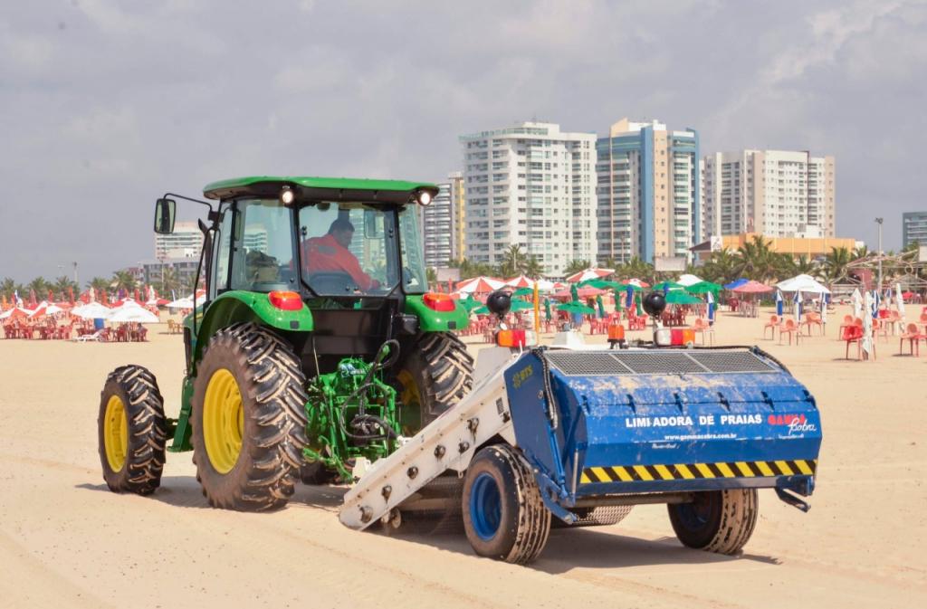 Para dar mais agilidade e garantir a eficiência no serviço de coleta de resíduos nas praias, a Emsurb utiliza também a máquina saneadora. O equipamento que é operacionalizado de segunda a sábado numa área determinada, saindo do farol (proximidades da Coroa do Meio) até a praia da Cinelândia, é um instrumento que funciona como espécie de peneira acoplada a um trator, que recolhe pequenos resíduos a uma profundidade de até 20 cm.