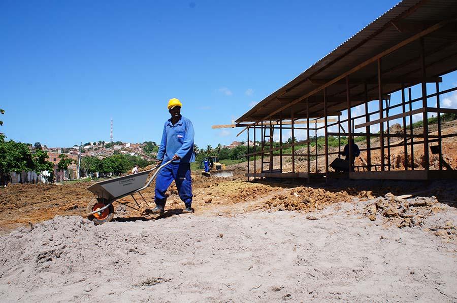 Cerca de 50 operários atuam nos serviços basilares e garantem que a execução do projeto siga em ritmo satisfatório.
