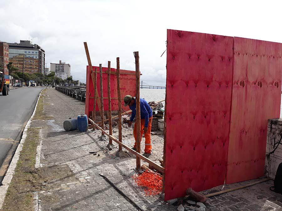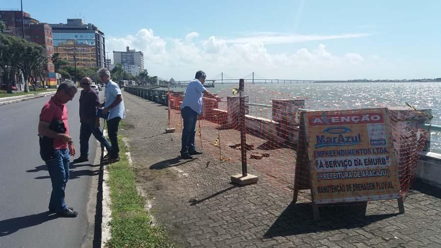 A Prefeitura de Aracaju, por meio da Empresa Municipal de Obras e Urbanização (Emurb), está trabalhando no passeio que margeia a avenida Ivo do Prado para recompor o piso danificado por um acidente automobilístico ocorrido na primeira semana de agosto e que acabou abrindo uma pequena fissura no local. Com o impacto do automóvel, um dos pilares da balaustrada que separa a via das águas do Rio Sergipe também foi danificado, porém sem comprometer outros trechos.