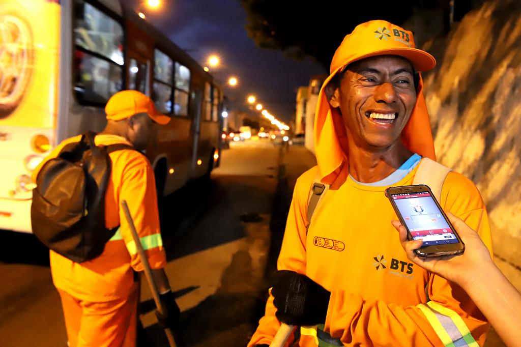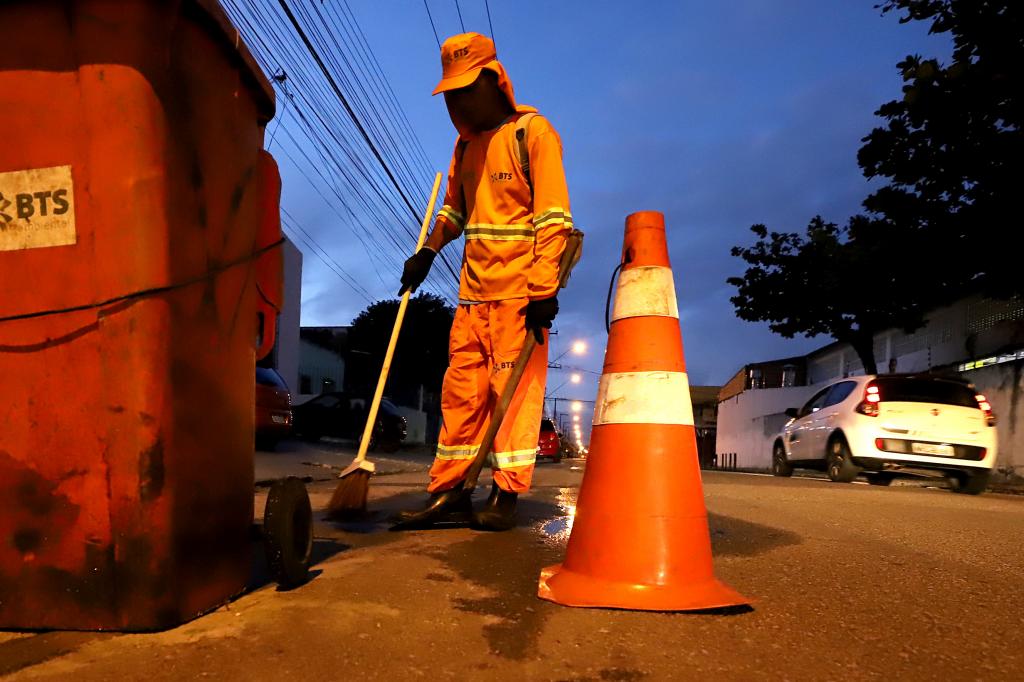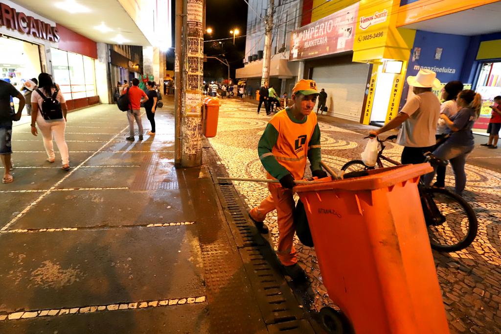 Enquanto algumas pessoas estão indo para casa depois das 18 horas, Ednaldo Lourenço está apenas no início da jornada de trabalho. Ele e o colega têm a missão de deixar parte da rua Acre limpa. O serviço é diário e feito com carinho. “Eu faço esse serviço há um ano e nove meses. Faço com amor porque gosto do meu trabalho. É daqui que eu sustento a minha família. Além disso, eu estou cuidando da cidade e os moradores ficam satisfeitos também”, disse o agente de varrição, Ednaldo Lourenço da Silva, de 52 anos.