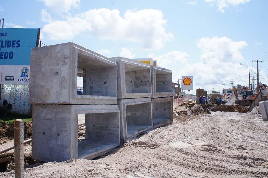 A segunda etapa da obra executada pela Prefeitura de Aracaju na avenida Euclides segue dentro do cronograma do projeto executivo e 65 grandes células de macrodrenagem já foram acopladas no trecho compreendido entre o canal do Jardim Bahia e a rótula da avenida Benjamin Constat, que dá acesso ao bairro Soledade.