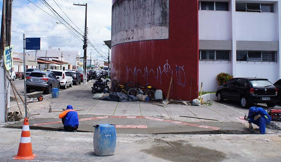 A Prefeitura de Aracaju iniciou, nesta semana, a construção de quatro novas rampas de acessibilidade nas esquinas das ruas Bahia e Porte Alegre, no bairro Siqueira Campos, zona Oeste da cidade. Essa intervenção urbanística visa a atender uma demanda da comunidade, apresentada à gestão municipal por representantes da sociedade civil.