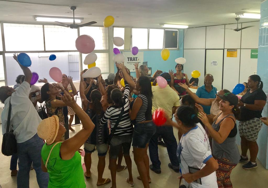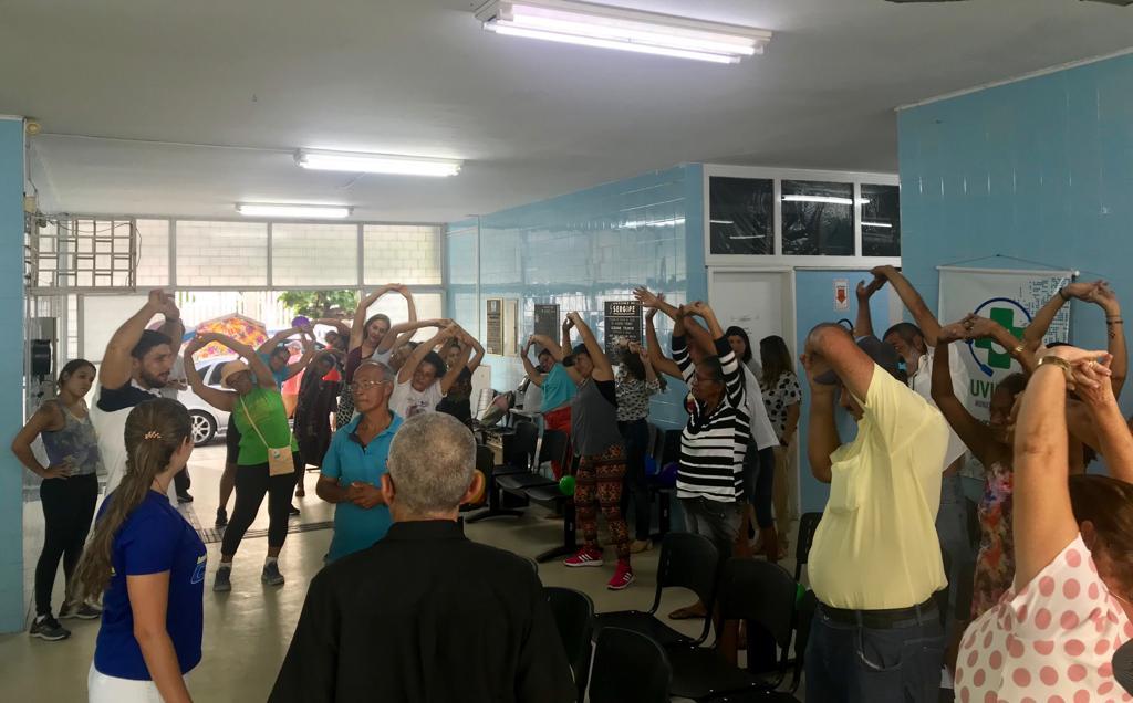 Após a terapia de rotina em grupo, os participantes se juntaram aos outros usuários atendidos no Centro e, na sala de recepção, a equipe do projeto Sons no SUS, promoveu uma atividade lúdica, com sessão de musicoterapia. O Programa Academia da Cidade também animou os participantes com a prática de exercícios, além das palestras envolvendo nutrição e saúde bucal.