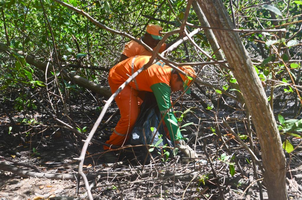Por possuir uma vegetação densa e com predominância de raízes aéreas, que acumulam facilmente embalagens plásticas, garrafas pet e outros tipos de materiais, o trabalho das equipes acontece de maneira minuciosa com o auxílio de gadanhos e carrinhos de mão, pela inviabilidade do uso de maquinários pesados.