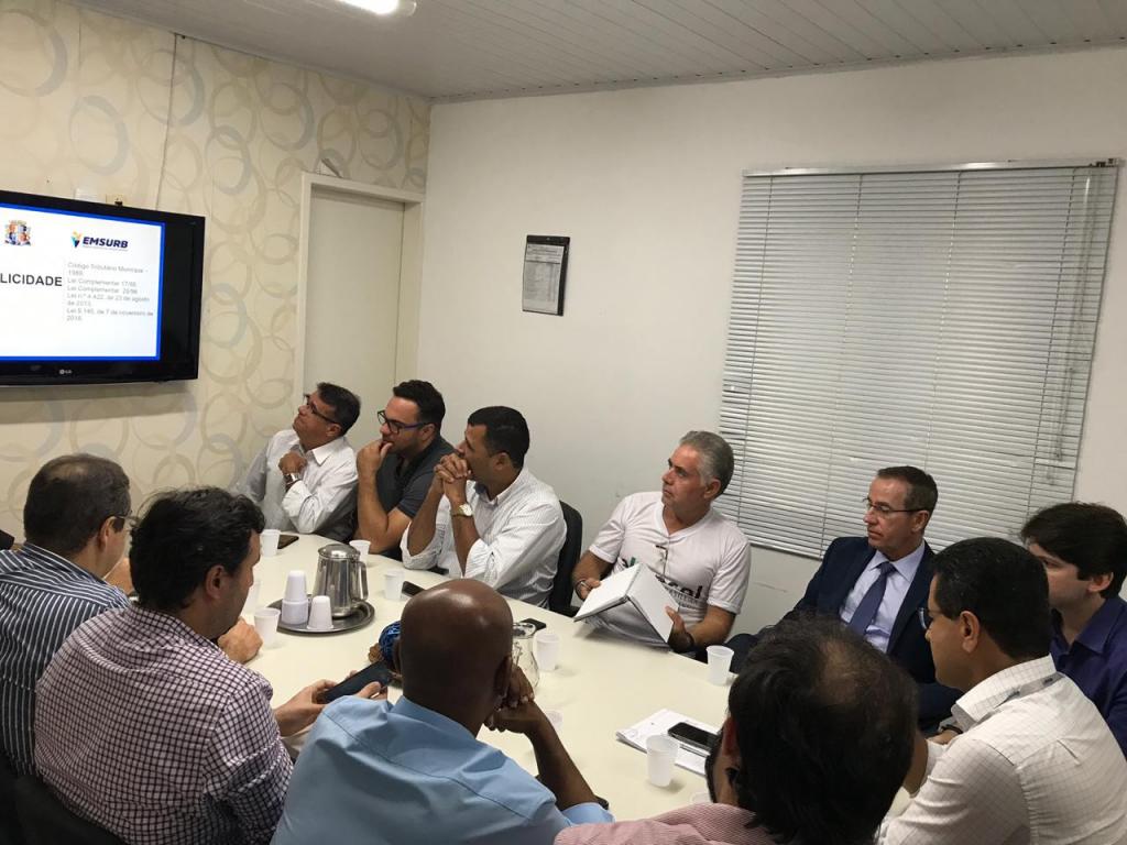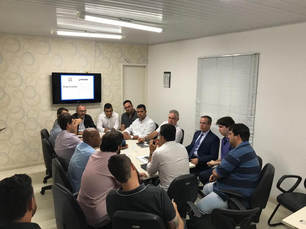 O presidente da Empresa Municipal de Serviços Urbanos (Emsurb), Luiz Roberto Dantas, se reuniu, na tarde desta quarta-feira, 11, com empresários e representantes de entidades comerciais da capital. Na ocasião, foi apresentada a proposta definitiva da Prefeitura de Aracaju que amplia as faixas de isenção das fachadas e placas de publicidade e ainda concede prazo de 15 meses, sendo 90 dias para solicitação e 12 meses para adequação.