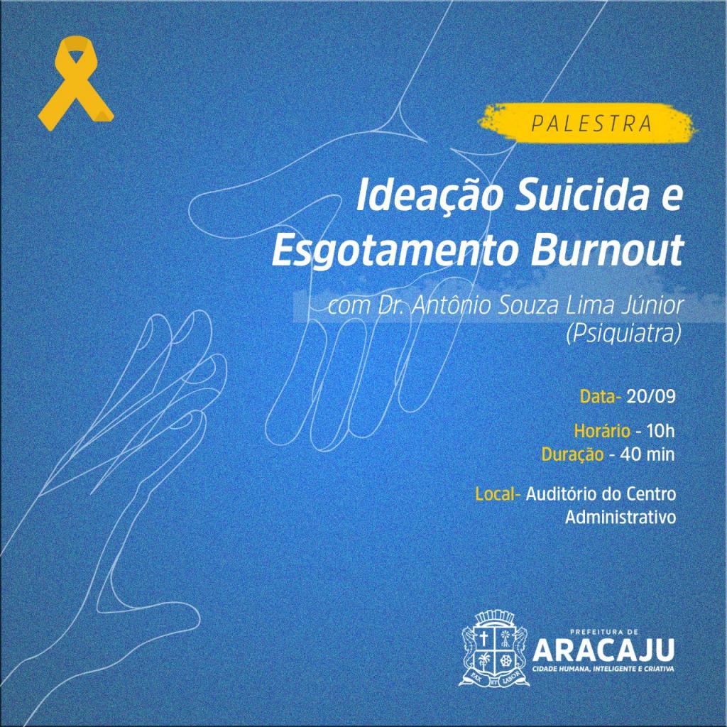 Temas relevantes no contexto social, alvos de uma campanha específica – Setembro Amarelo -, a ideação suicida e o esgotamento Burnout serão abordados em palestra proferida pelo médico psiquiatra Antônio Souza Lima Júnior. Realizado pela Coordenadoria Geral de Gestão de Pessoal, da Secretaria Municipal de Planejamento, Orçamento e Gestão (CGGP/Seplog), o evento integra o Programa Servidor Saudável e será realizado nesta sexta-feira, dia 20, às 10h, no auditório do Centro Administrativo Prefeito Aloísio Campos.