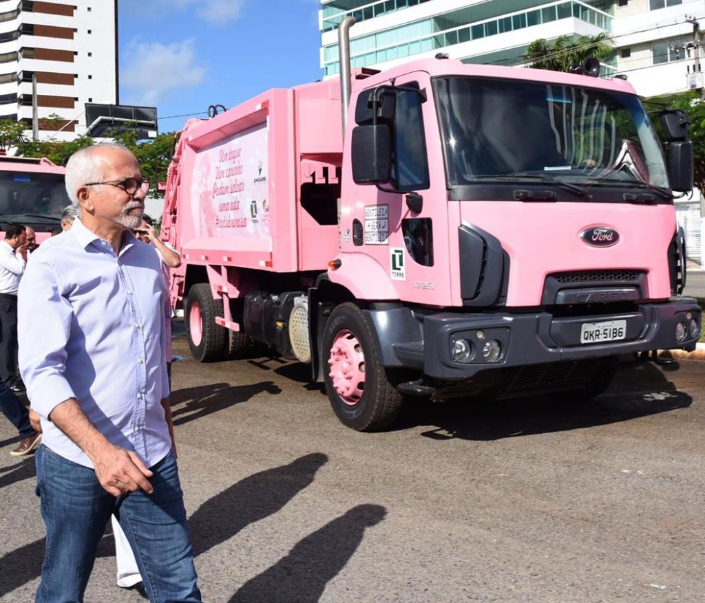 O prefeito Edvaldo Nogueira apresentou, na manhã desta terça-feira, 24, os caminhões da limpeza pública que estamparão a campanha “Outubro Rosa”, de conscientização sobre o câncer de mama e o câncer de colo do útero. Durante um mês, três veículos – dois caminhões coletores e um ônibus –, plotados na cor rosa e com informações de prevenção da doença, circularão a cidade. A iniciativa é uma parceria entre a Prefeitura de Aracaju, através da Empresa Municipal de Serviços Urbanos (Emsurb), e a empresa Torre Empreendimentos.