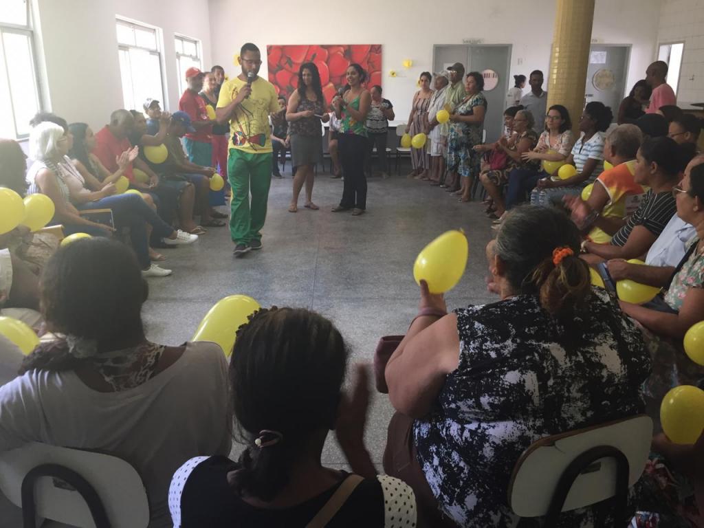 O psicólogo do Caps Vida, Jamesson Pereira Silva, foi convidado para conversar com os usuários do Caps Jael sobre a valorização da vida. “Hoje, no fechamento do Setembro Amarelo, além da palestra do psicólogo da nossa rede, trouxemos música, arte, apresentação cultural e dança. Houve também o circuito divertido, uma série de atividades coletivas com mensagens para uma maior integração, boate e expressão artística livre. À tarde houve o karaokê intitulado “The Voice Caps”, que eles gostam muito”, completou Laís.