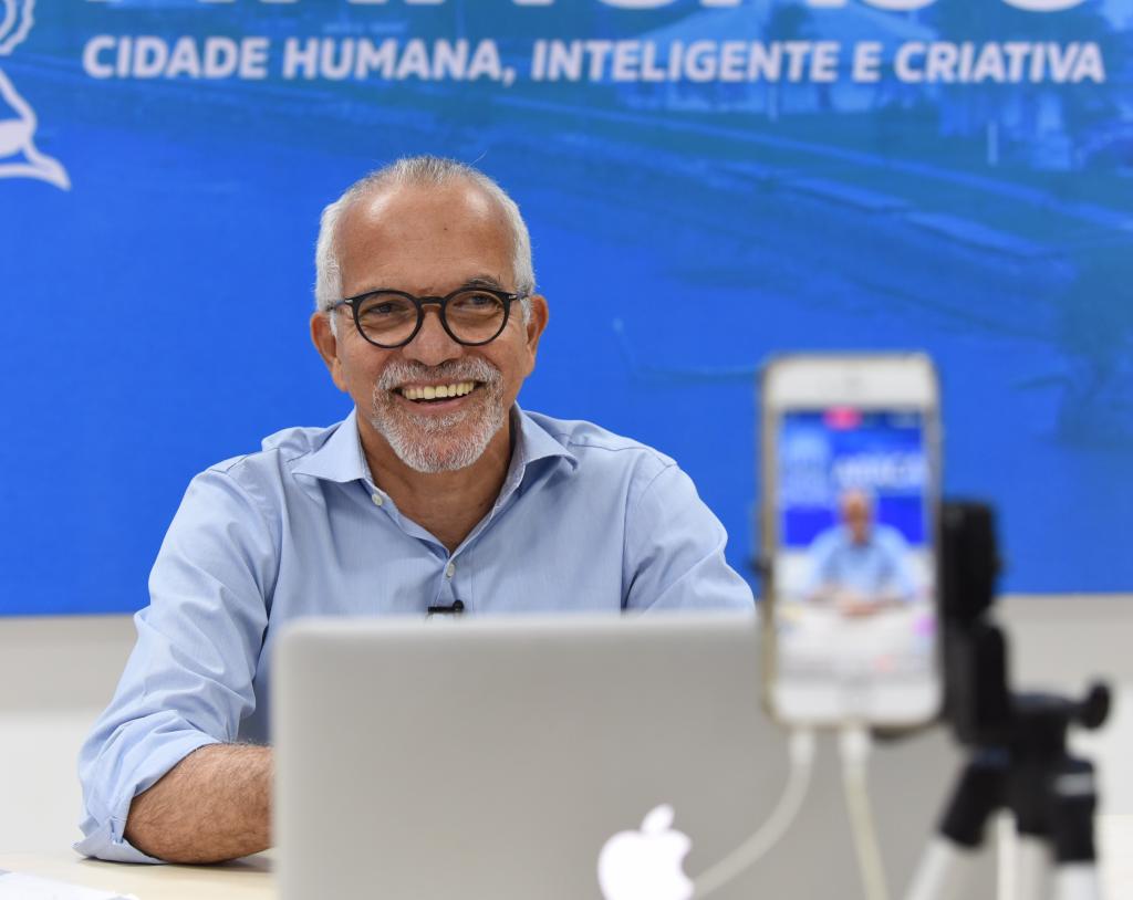 "É com imensa alegria que inicio essa live com uma grande notícia, que é o cronograma de novas ordens de serviço, estabelecido por nós. Este mês de outubro será marcado pelo início de projetos estruturantes muito cobrados, durante nossos encontros virtuais, e, por isso, fiz questão de anunciar aqui, neste canal que se fortalece cada vez mais. Então, atenção moradores dos loteamentos Isabel Martins e Santa Catarina: a nova leva de autorização de obras começa nesta área, de vocês, no dia 11 de outubro", contou Edvaldo.