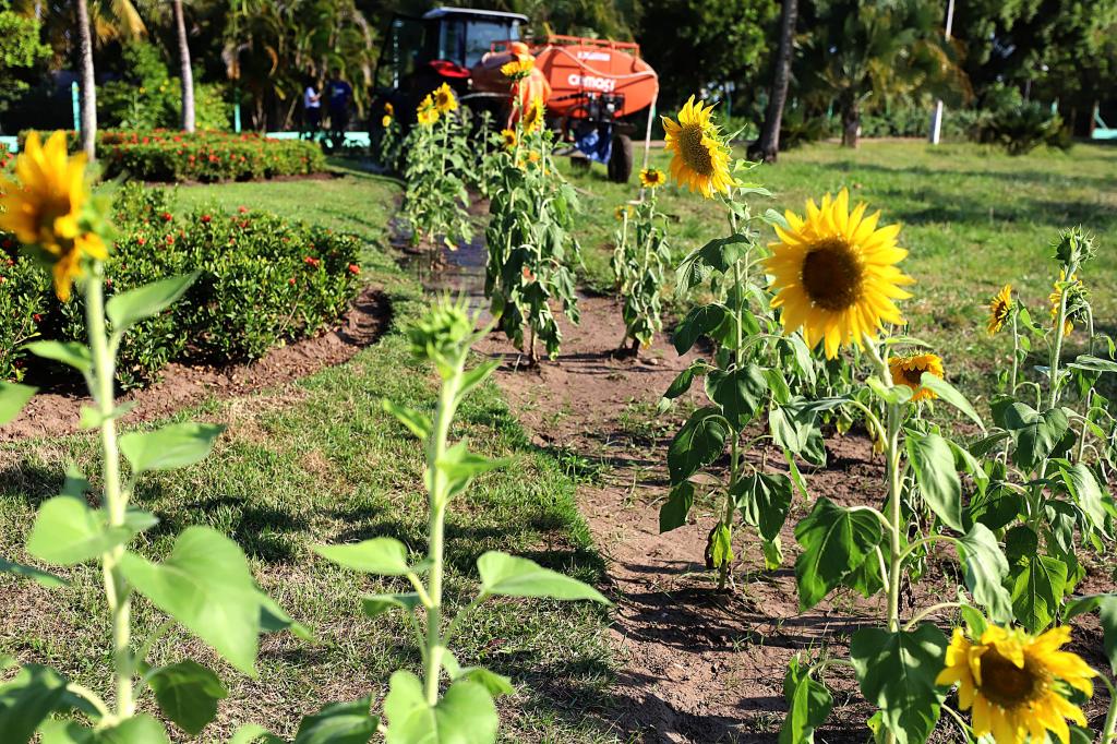 A beleza do verde e amarelo que desabrocha com a Primavera encanta quem passa pelo Parque Augusto Franco (Sementeira) nesta época do ano. O miolo robusto e as pétalas ovais, pecioladas, trazem um toque especial para o que hoje é conhecida como “A curva do Girassol”. Especialmente pela sua beleza e encantamento causado nas pessoas, assim como sua perenidade, é que a Prefeitura de Aracaju, por meio da Secretaria Municipal do Meio Ambiente (Sema), criou uma área específica para a plantação de girassóis no Parque da Sementeira.